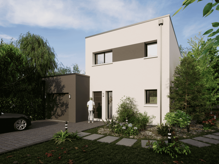 Cette maison design étage avec une couverture bac acier bénéficie d'une belle luminosité et d'un jardin plat de 347 m².