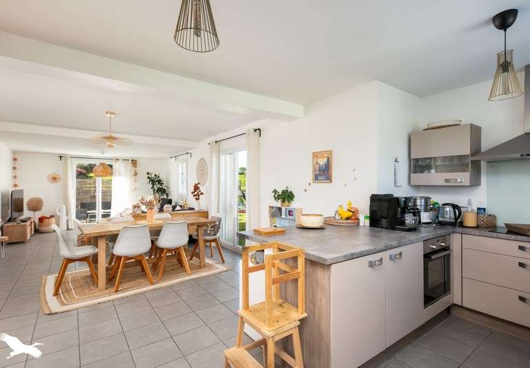 Maison familiale avec de beaux volumes, composée de 4 chambres dont la vie de plain-pied et d'un vaste séjour avec une exposition Sud-Ouest. À l'extérieur une terrasse et un jardin permettent de profiter d'un cadre paisible en bord de forêt. Ses atouts, les matériaux de qualité.