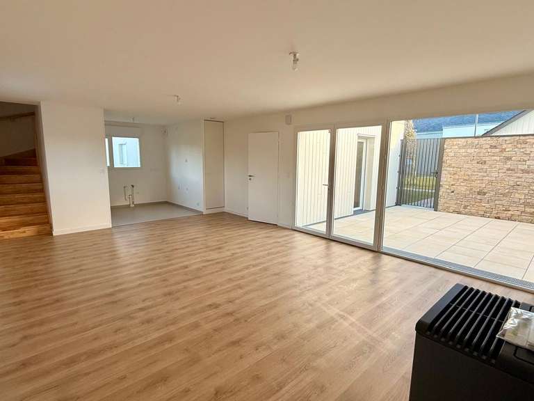 CARNAC, entre bourg et plage, dans résidence récente de 9 maisons, maison neuve 4 chambres de 118m2. Elle offre une superbe pièce de vie de 32m2 avec cheminée, cuisine ouverte aménagée et équipée, une chambre en rez de jardin avec sa salle d'eau privative, wc séparés. A l'étage 3 belles chambres dont une avec salle d'eau privative, salle de bains et wc séparés.