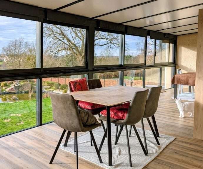Cette propriété séduit par la qualité de ses prestations, ses volumes généreux et sa vue sur la nature.