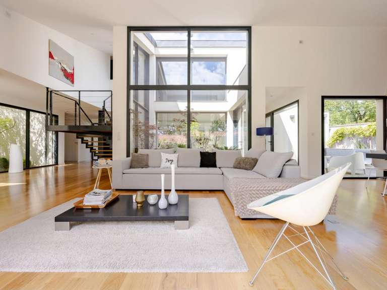 Vaste salon séjour tournant autours de son patio, pièce maitresse de ce bien unique