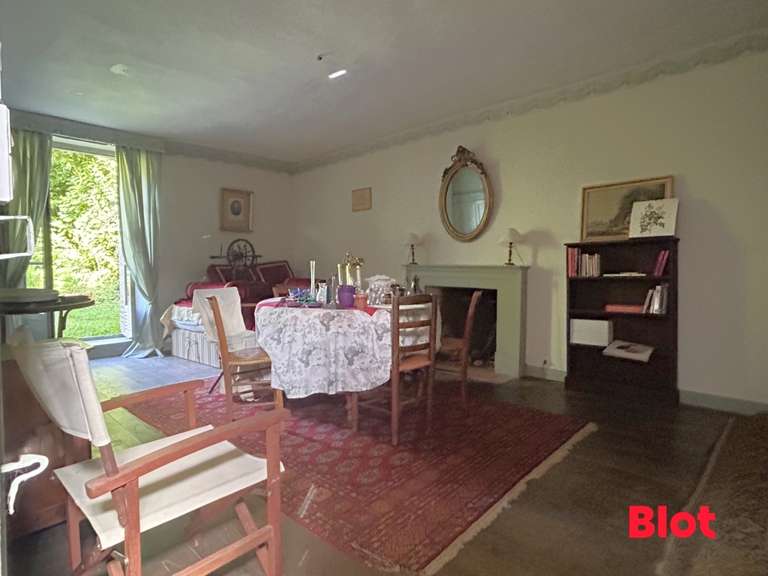 Au rez-de-chaussée, elle comprend une pièce de vie d'environ 36 m² avec cheminée, un séjour de 22 m² et un WC.