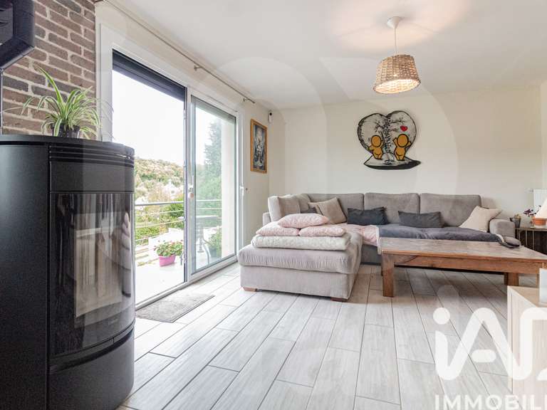 Dans le prolongement, le salon se dévoile comme un véritable cocon intime. Idéalement situé à l'écart du passage, il profite d'une lumière omniprésente et de larges ouvertures sur le jardin. Il dispose également d'une cheminée et d'un poêle à granulés pour un confort thermique parfait.