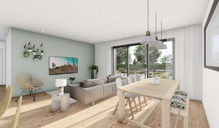 Dans un style architectural moderne et épuré, découvrez cette maison de plain-pied de 85m² qui allie confort et fonctionnalité. La maison se distingue par sa toiture en ardoises, matériau à la fois esthétique et résistant, garantissant une longévité à toute épreuve.