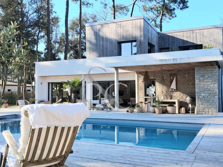 A l'extérieur, la sensation de villégiature est immédiate : piscine chauffée, espace brasero, pour prolonger les soirées sous les étoiles, multiples terrasses pour profiter du soleil levant comme couchant, le tout à l'ombre des pins maritimes. Chaque espace a été pensé pour savourer pleinement la douceur de vivre en toute saison.