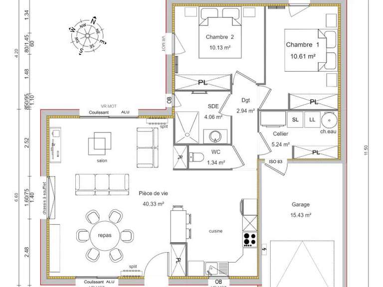 - Un espace cuisine fonctionnel, à imaginer selon vos envies,