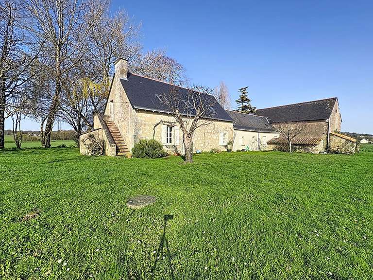 Maison située en campagne des Bois d'Anjou. Cette ancienne ferme rénovée offre une surface habitable de 170 m2 sur un terrain de 1464 m2, sans vis-à-vis. Elle comprend au rez de chaussée un séjour/cuisine avec tomettes poutres et cheminée, une pièce, une chambre, à l'étage trois chambres,