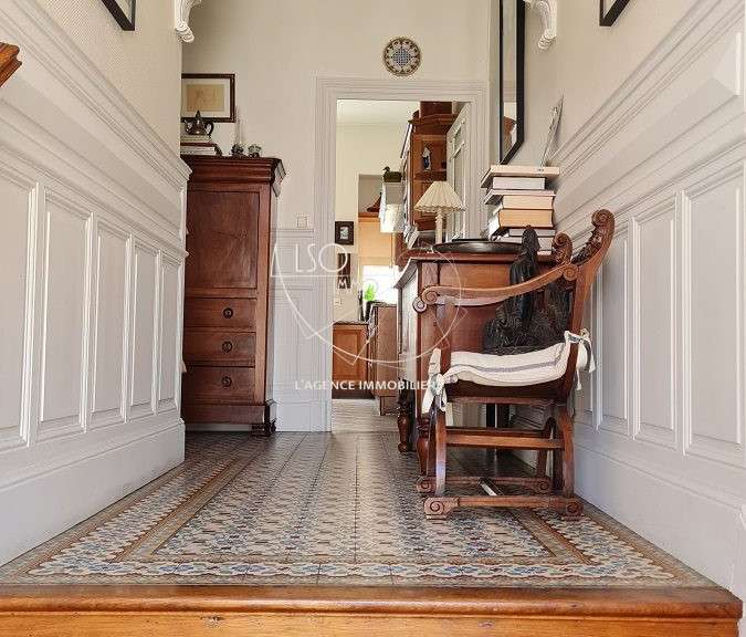 Dès l'entrée le goût est donné ; carreaux de ciment d'époque, parquets massifs, belle hauteur sous plafond, cheminées, etc...