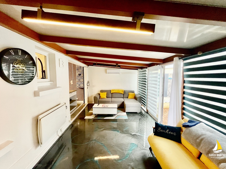 La maison se prolonge avec une buanderie fonctionnelle, puis une magnifique pièce de vie baignée de lumière grâce à son exposition plein sud. Vous profiterez d'un espace salon-séjour ouvert sur une cuisine aménagée et entièrement équipée, aux finitions soignées. L'ensemble s'ouvre harmonieusement sur une terrasse et un jardin entièrement clos et paysagé, idéal pour vos moments de détente.