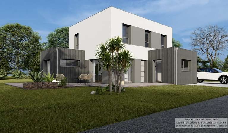 Cette maison comtemporaineTRECOBAT GREEN à ossature bois enduite vous offre des volumes généreux, son chauffage par aérothermie, sa conception bioclimatique avec panneaux photovoltaïques pour un confort de vie optimal. Elle se compose d'une vaste pièce de vie avec cuisine ouverte de 3 belles chambres et d'une grande salle de bains. Nouveauté du groupe TRECOBAT, cette construction aux normes RE2020, vous permet d'être en avance sur les nouvelles règlementations thermiques pour les 10 années à venir. (Domotique, Nestor, ventilation intelligente, qualité des matériaux utilisées...).
