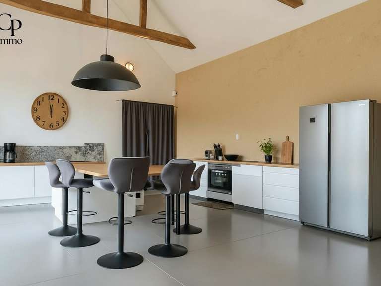 L'habitation de 95 m² a été entièrement rénové en 2020 (Couverture, isolation toit et murs, huisseries, électricité, etc..). Elle se compose au RdC d'une cuisine aménagée ouverte sur le salon/séjour et d'une chambre avec salle d'eau et wc.