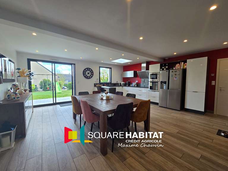 pièce de vie avec son salon et son poêle à bois s'ouvrant sur une cuisine aménagée et équipée. De grandes baies vitrées s'ouvrent sur une grande terrasse et son jardin sans vis à vis avec vue dégagée sur la campagne. Vous trouverez, attenante à la cuisine, une buanderie ainsi qu'une cave et un gigantesque garage avec sa porte motorisée et son grenier. Une vraie vie de plain-pied est possible grâce à sa très belle suite parentale, chambre, salle d'eau et dressing. L'étage comprend 5 chambres, wc séparés et salle de bains. Aucuns travaux ne sont à prévoir. Vous n'aurez qu'à poser vos valises !