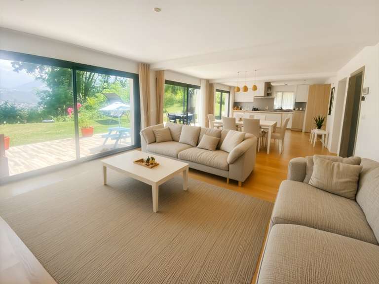 Passy coteau superbe chalet T5 de 190 m2 DPE A au calme composé au 1er niveau d'un garage double,une salle de jeux (chambre) avec une douche,un wc, un hall d'entrée avec placard,une buanderie ,une cave . Au deuxième niveau : Une grande pièce à vivre avec cuisine équipée et ilot central de qualité ouvrant sur une grande terrasse ensoleillée donnant sur une vue imprenable, un cellier et un wc. Au dernier niveau: 3 grandes chambres dont une avec un douche et dressing, une salle de bain . Prestations de qualtié: chauffage au sol par pompe à chaleur ,volets roulants motorisés,menuiseries aluminium anthracite,parquet massif...