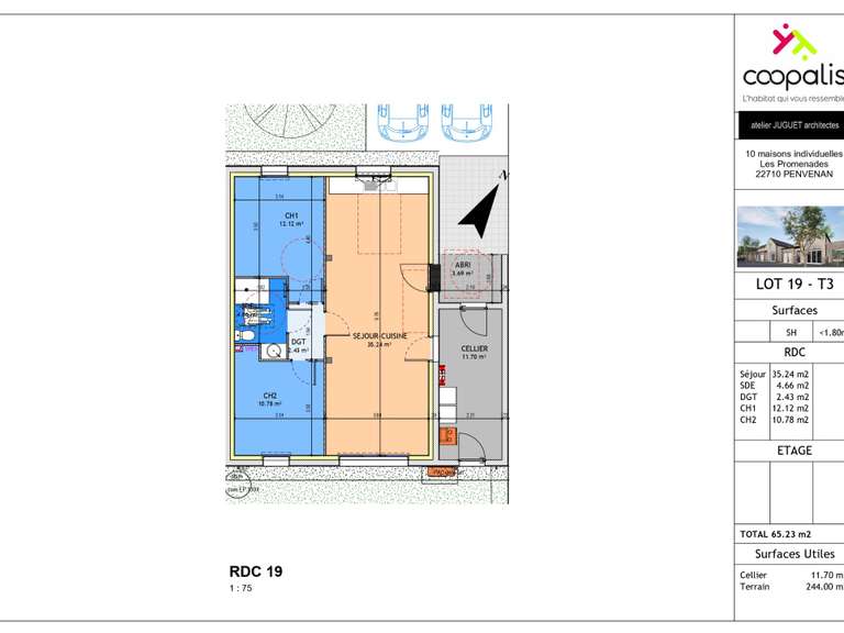 Le terrain est entièrement viabilisé et prêt à accueillir votre projet de construction. Le lotissement dans lequel il se trouve a été soigneusement aménagé pour garantir une qualité de vie optimale à ses résidents. Cette maison contemporaine de 102m² sur deux niveaux se distingue par son architecture traditionnelle et sa toiture en ardoises, conférant à l'ensemble un cachet indéniable.