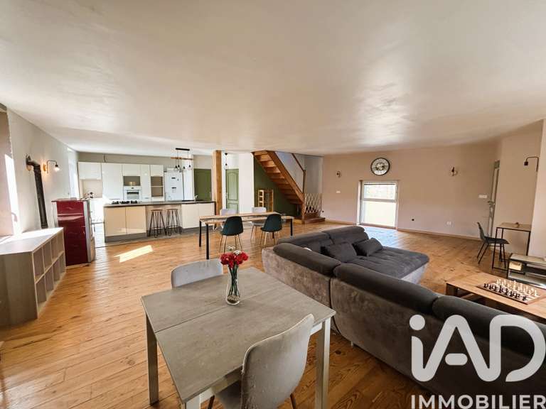 À l’étage principal, la maison propose une entrée desservant une salle de bain, un WC indépendant, ainsi qu’une cuisine de 12 m² ouverte sur une vaste pièce de vie lumineuse d’environ 56 m², idéale pour accueillir famille et amis.