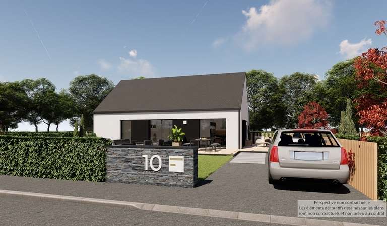 La pièce principale est baignée d'une lumière traversante grâce à des menuiseries judicieusement positionnées à l'Est, à l'Ouest et au Sud. La cuisine, avec la possibilité d'intégrer un îlot central, offre un espace convivial pour les petits déjeuners en famille. Les baies coulissantes en aluminium de 2m60 permettent un accès direct aux extérieurs.