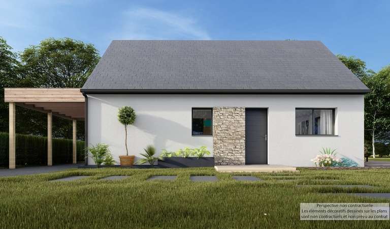 Découvrez ici une maison de plain-pied fonctionnelle et personnalisableConstituée d'une pièce à vivre lumineuse d'environ 35m² avec hall d'entrée et 2 chambres confortables avec rangements,Atelier- garage attenant.