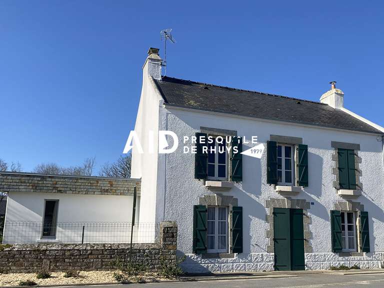 Située à Sarzeau, à environ 2 km des commerces et 3 km des plages, cette maison d'environ 120 m2 habitables (140 m2 au sol) bénéficie d'un cadre de vie entre mer et campagne.