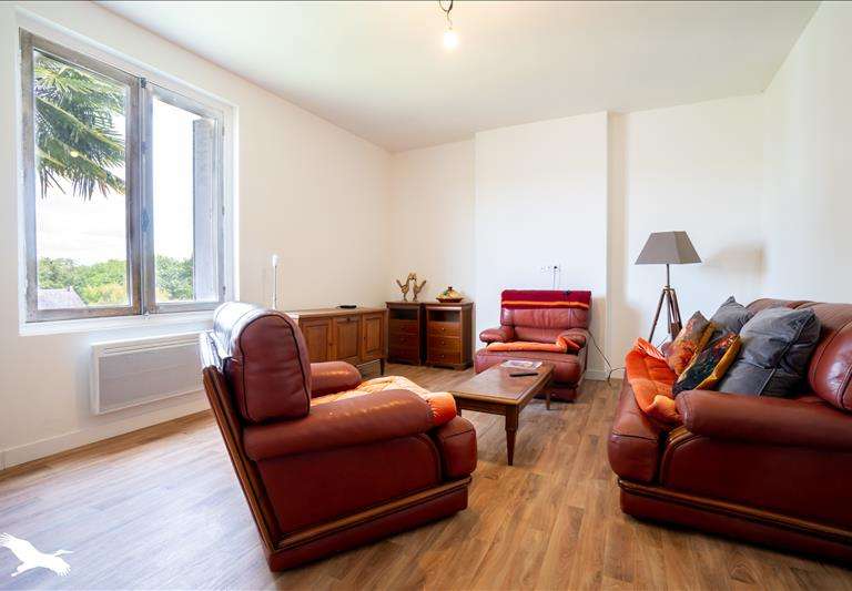 Dès l'entrée, vous découvrez un espace de vie agréable composé d'une cuisine aménagée, d'un salon-séjour, d'un bureau ainsi que de WC indépendants.