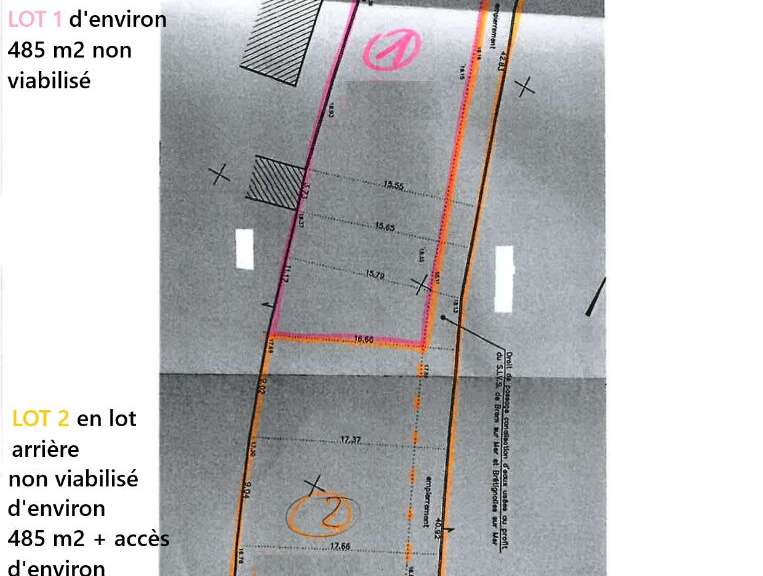 BREM SUR MER , hameau de LA CORDE, lot 2 terrain à bâtir non viabilisé d'environ 812 m2 dont accès d'environ 327 m2 et hors lotissement. Calme et campagne à 3kms des plages.