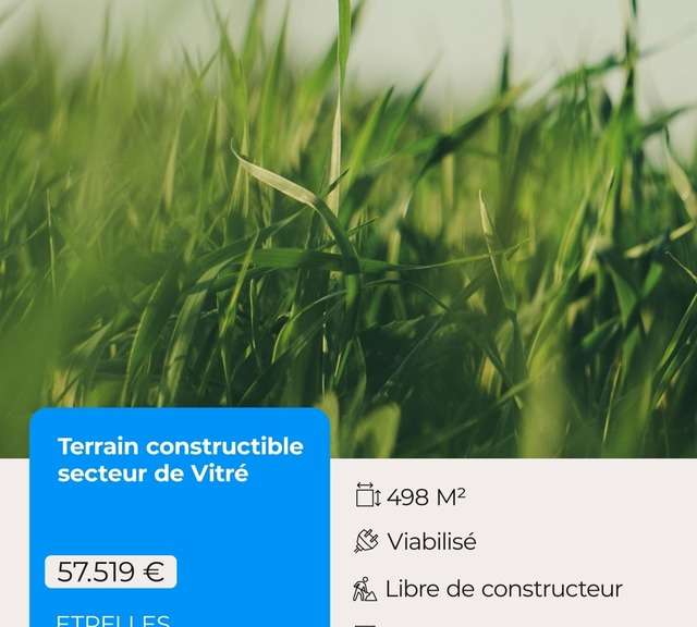 Capifrance vous propose à la vente un terrain à bâtir rare sur le secteur de Étrelles, commune dynamique et attractive aux portes de Vitré. D'une superficie de 498 m², cette parcelle entièrement viabilisée, libre de constructeur, constitue une opportunité idéale pour concrétiser votre projet de construction dans un environnement à la fois pratique et agréable.