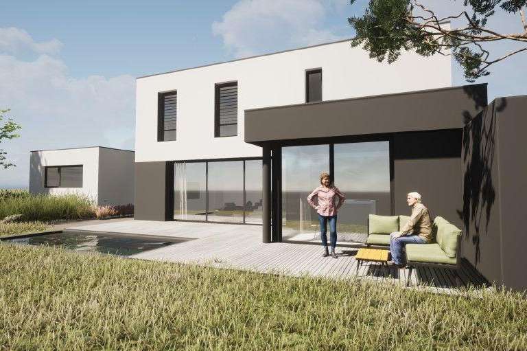 À l'extérieur, le permis inclut également une piscine (2,50m par 5,45m) et une annexe d'environ 30 m² pouvant servir en partie de local technique pour la piscine, d'atelier et d'espace de stockage. Le terrain bénéficie d'une orientation sud-est.