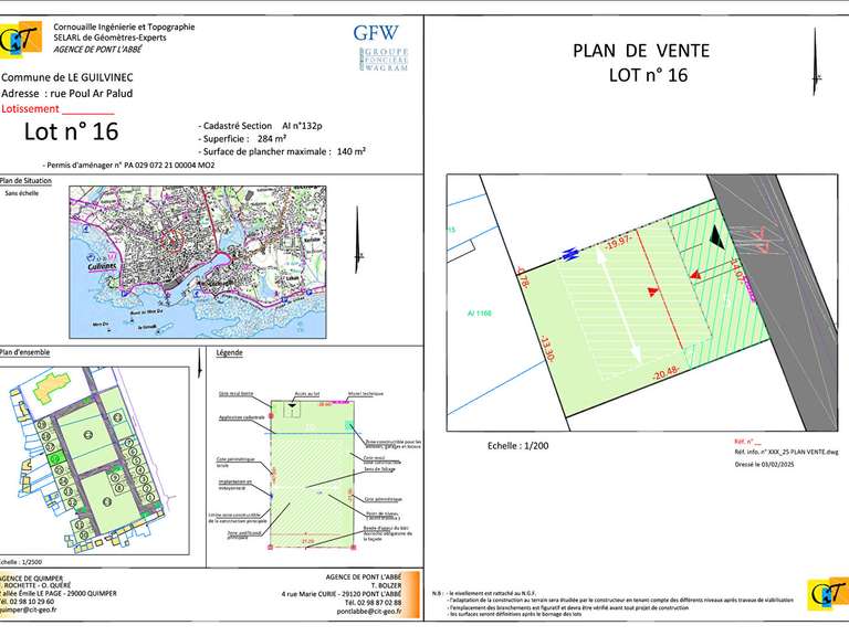 GUILVINEC - A proximité des commerces, du port et de la plage. Venez découvrir ce terrain en lotissement de 291m2 (lot n 16), livrable entre Juin et Septembre 2025. Le terrain sera viabilisé et raccordable au tout-à-l'égout.