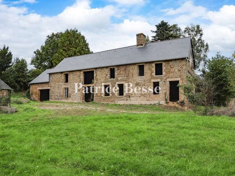 Dans le sud de la Manche, non loin de la capitale du Mortainais, un logis en travaux et son domaine d'environ 5 ha. Depuis une route de campagne, la propriété d'environ 5 ha est accessible par un petit chemin. Elle apparaît comme un ensemble rural bien structuré, entourée d'un paysage verdoyant et vallonné, au surplomb d'une vallée parcourue d'un ruisseau. Le bien comprend plusieurs bâtiments, répartis autour d'une cour. Le logis principal, en cours de rénovation, est orienté sud-ouest. La vaste longère est élevée de deux niveaux, avec une toiture à deux pans recouverte de tuiles récentes. La façade mêle pierre apparente et enduit clair, jalonnée de baies régulières, dont plusieurs ont été percées récemment. Sans doute daté pour partie du 17e s., selon la date de 1665 gravée sur un linteau, l'ensemble comprend plusieurs éléments architecturaux remarquables. Au sud de la cour, une vaste dépendance agricole en brique, pierre et colombage, est coiffée d'une toiture en ardoise à deux pans. Au centre de la cour, un puits couronné d'une petite toiture à quatre pans voisine avec un ancien tour de pressoir. La cour est fermée à l'ouest par un autre vaste bâtiment agricole de facture récente, dissimulé par un relief du terrain et un haut tilleul.
