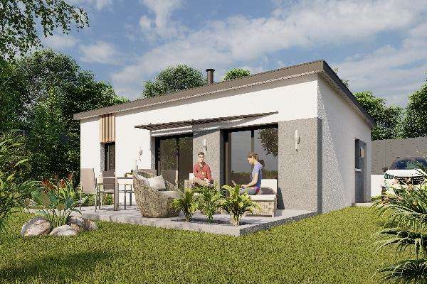 Maison Re 2020 de type plain pied composé d'une belle pièce de vie exposé sud, d'un cellier et de 2 chambres sur un terrain de 343 m2 en lotissement.