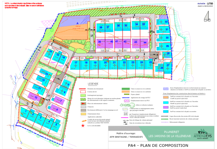 Le terrain est vendu borné, viabilisé et libre de constructeur, tout à l’égout, fibre….