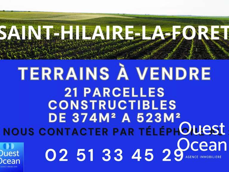 Votre agence Ouest Océan ,vous accueille téléphoniquement du lundi au vendredi ,de 8h30 à 18h.Prenez rendez-vous avec notre conseiller afin de découvrir cette parcelle de terrain à bâtir entièrement viabilisé, située au sein d'un lotissement de 21 lots proche centre-bourg de SAINT HILAIRE LA FORET.D'une superficie de 523 m² pour le lot 12, parfait pour votre projet de construction.