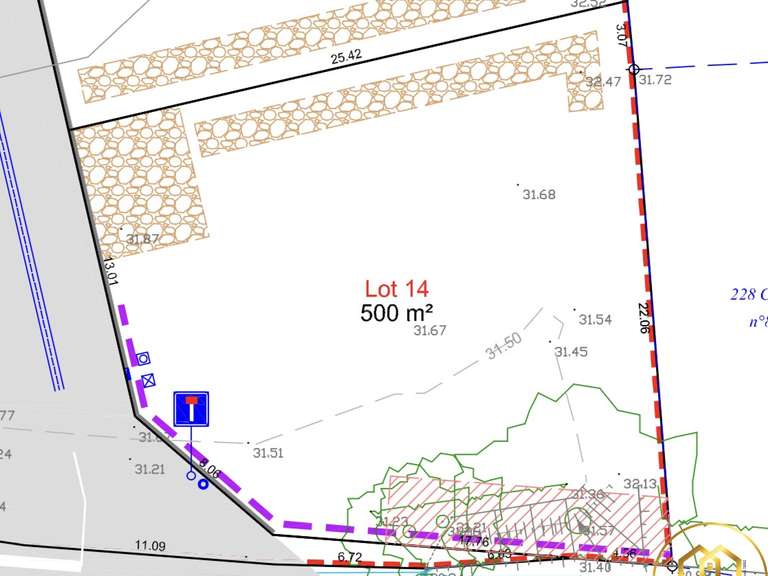 Alpha-Immobilier vous propose ce beau terrain d'une surface de 500 m2, vendu viabilisé en eau, éléctricité, tout à l'égout, et libre de constructeur.