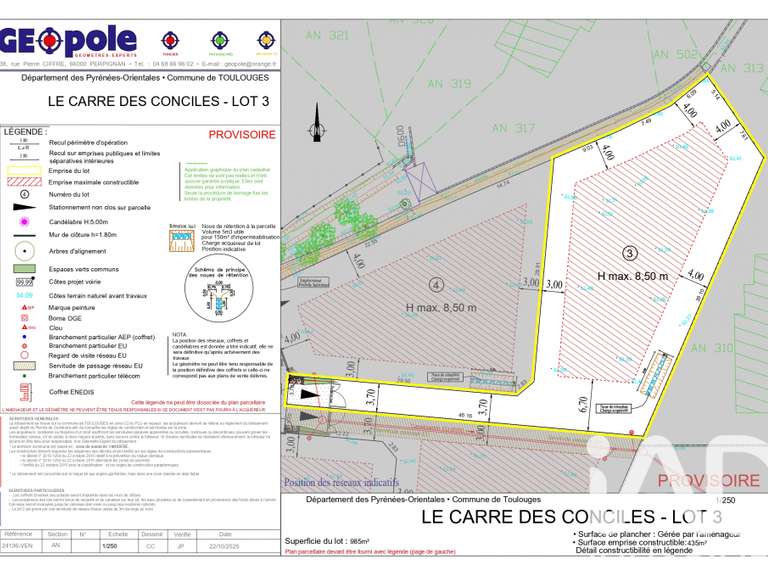 Magnifique parcelle de 733m² quatre faces lot 4 du lotissement, 387m² d’emprise constructible. Possibilité de construire deux logements mitoyens sur la même parcelle. Possibilité de construire un R+1, hauteur maximale de 8,50 mètres.