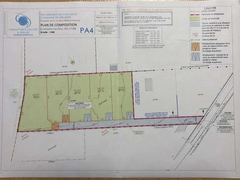 Un lotissement composé de cinq lots : trois lots de 497 m², un lot de 494 m² et un lot 716 m²